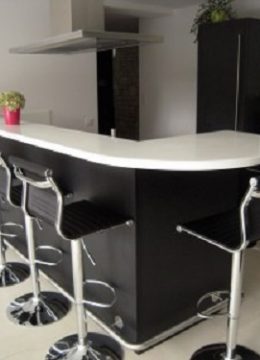 Table basse planche de surf en chêne et sipo massifs à Lacanau